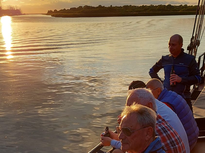 De route wordt afgestemd op het weer en jullie wensen—misschien droogliggen op het Wad, of ’s avonds samen de stad verkennen.